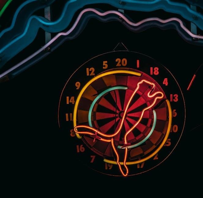 This manual serves as a vital resource for Halex Electronic Dart Board owners, offering comprehensive, easy-to-understand guidance. Its primary purpose is to ensure a safe, enjoyable, and long-lasting experience with your product. This document covers all essential information, from initial unpacking, proper assembly, battery installation, and power connection, to secure mounting. Furthermore, it clarifies operational aspects like powering on/off, selecting game modes, player setup, and volume adjustment. You will also find clear explanations of the scoring display and fundamental rules for popular games such as Cricket and 301/501. Adhering to these instructions and safety warnings maximizes your dart board’s performance, ensuring countless hours of entertainment. This guide empowers you with the knowledge for seamless setup, proficient operation, and effective troubleshooting. Please retain this manual for future reference, crucial for optimal product enjoyment.